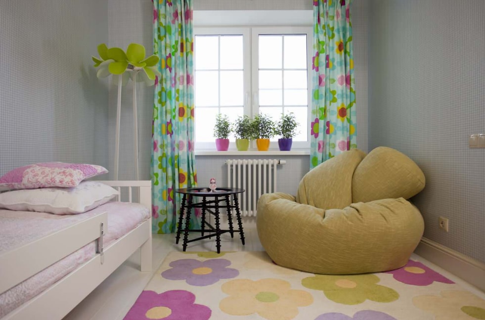 Довольно часто кресло-мешок выбирают именно для детской комнаты. Это действительно оправданно, так как в отличии от классических стульев, этот вариант не имеет углов и твердых элементов. То есть он максимально безопасный для детишек любого возраста